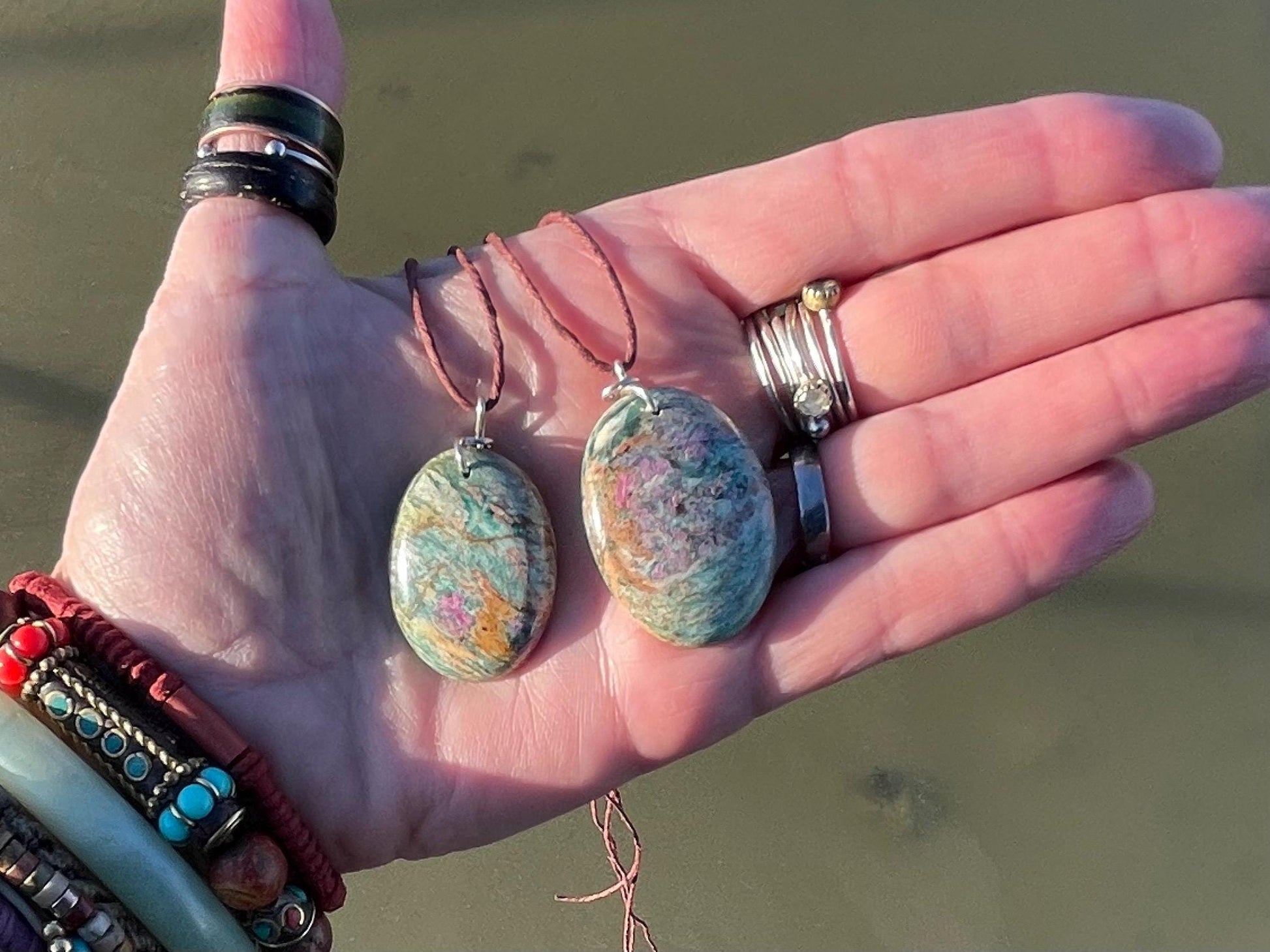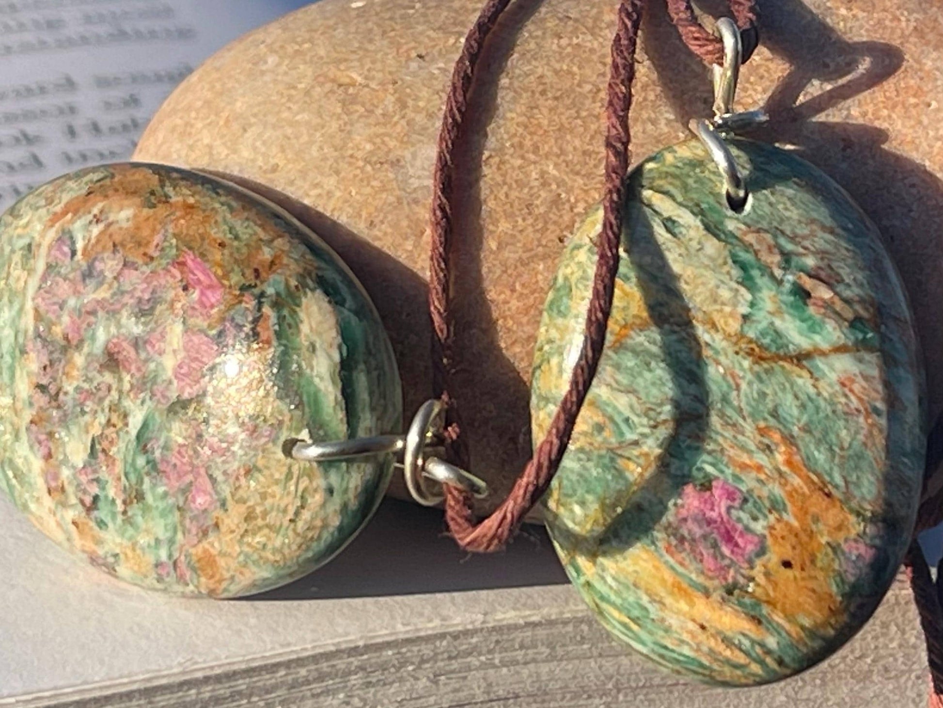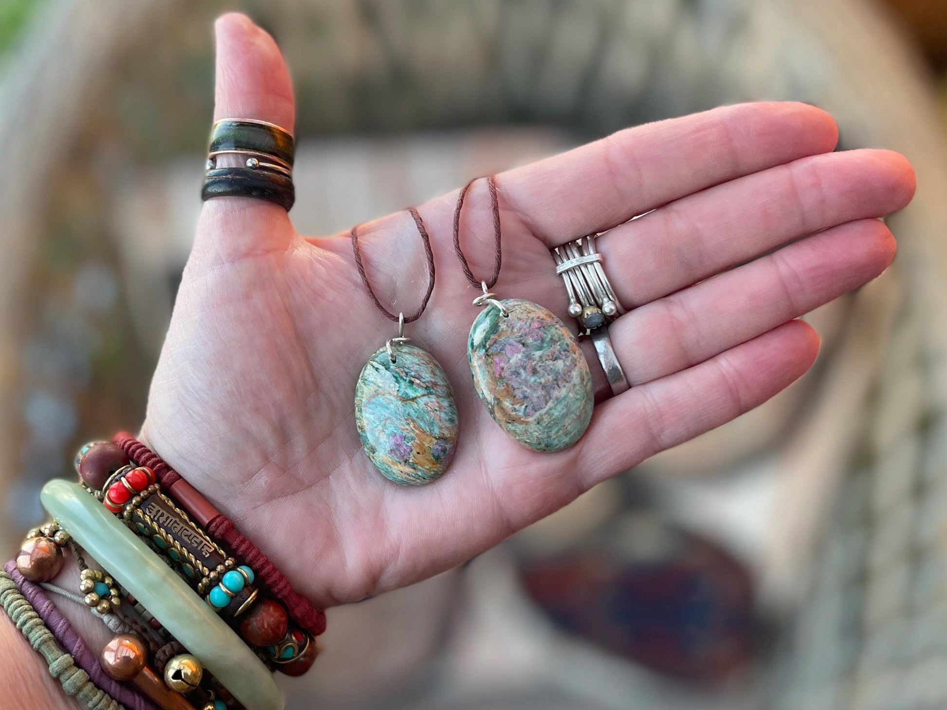 The energies of Ruby and Fuchsite combined offer strong emotional support and self reflection during difficult times. The Ruby, which offers endless courage and strength, combined with the relaxing and nourishing vibrations of the Fuchsite.