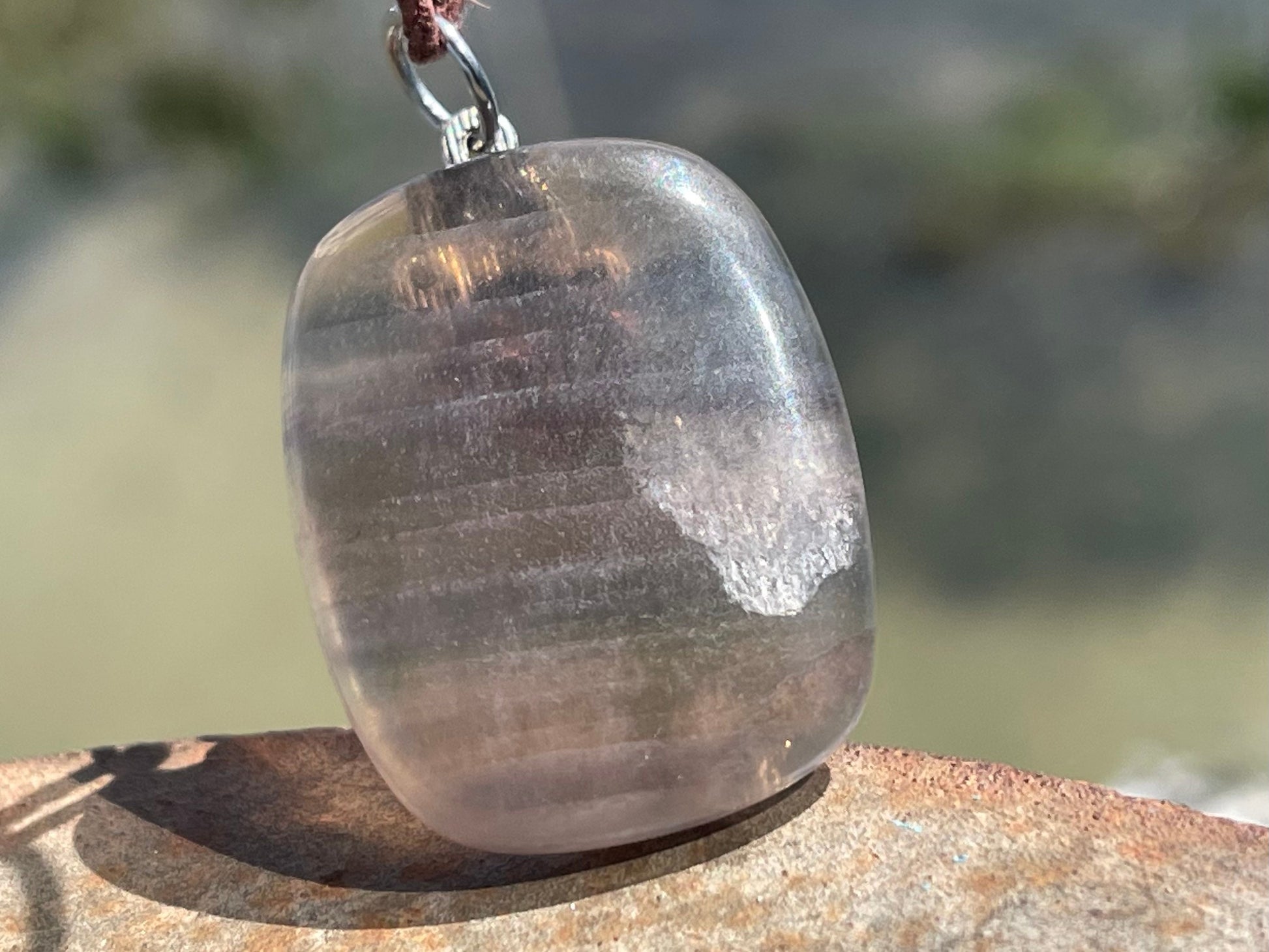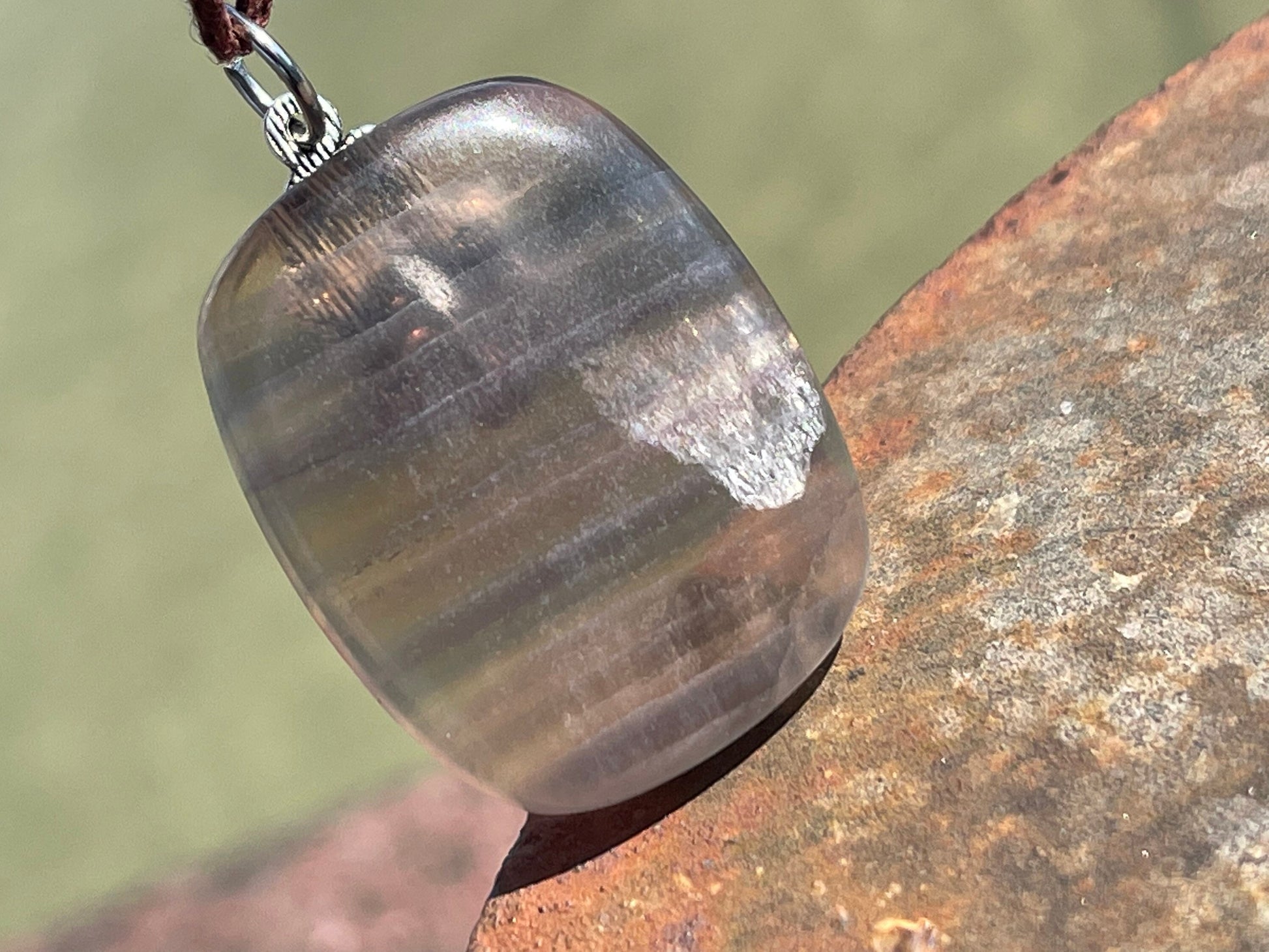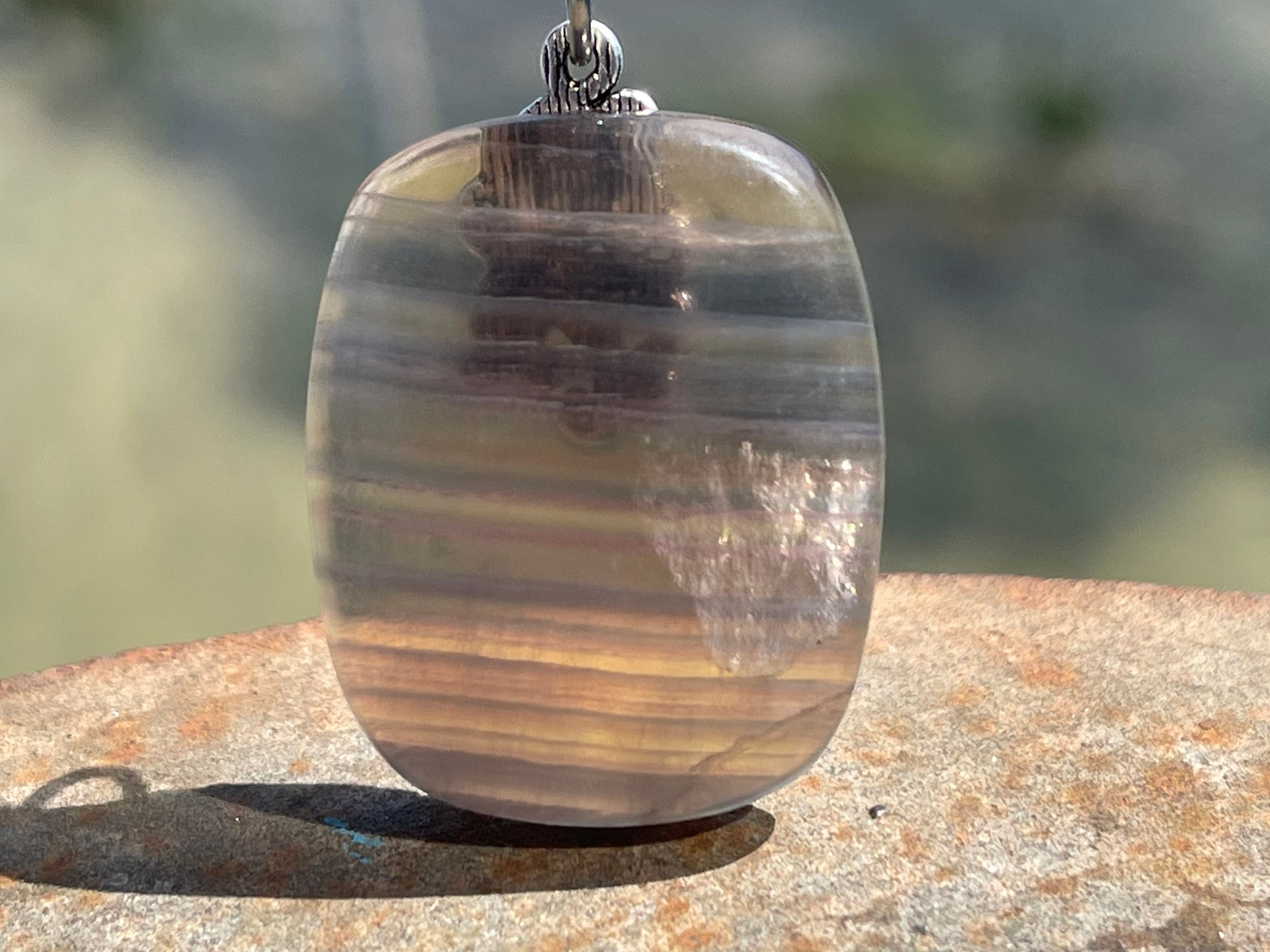 Beautiful fluorite that comes alive in the sunshine. It has typical striped colourations and also a lovely white crystallised inclusion.
