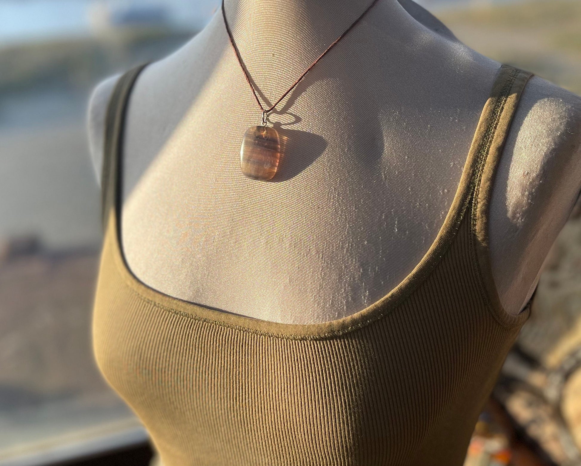I have hosted this gemstone on a little silver octopus (situated to the back of the piece) and hung it in sustainable hemp.