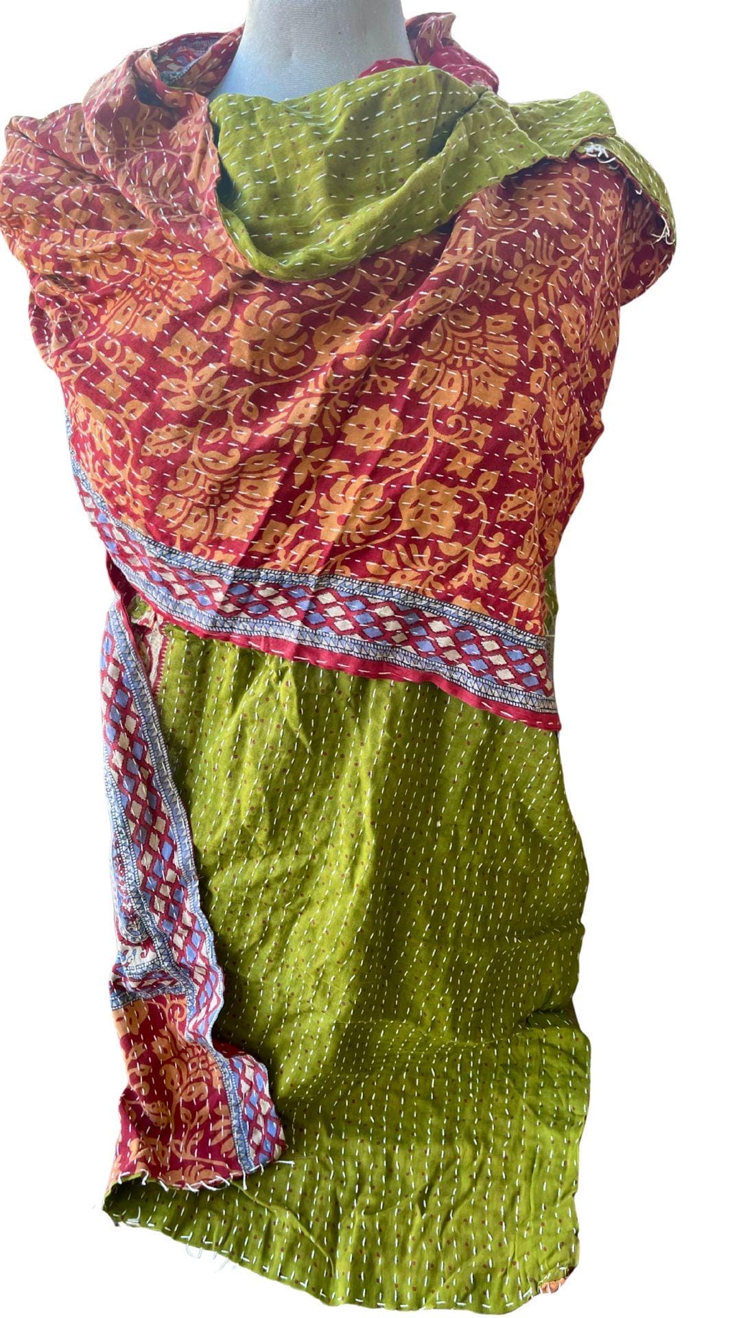 These scarves/wraps are made from vintage cotton and are lovely and soft. Lots of material to throw around your shoulders or wear around your neck.76 inches (193 cms) in length and 18 inches (46 cms) in depth.