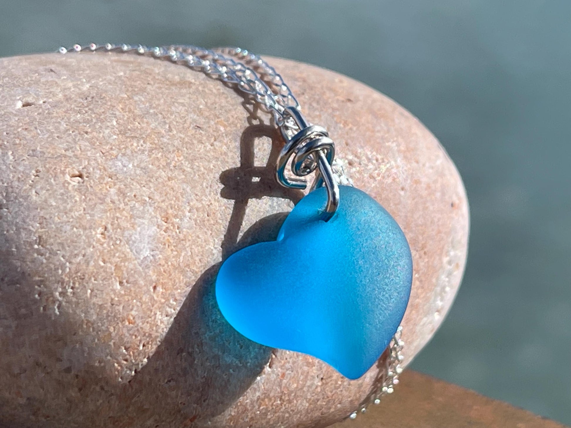 Sea glass heart necklace. Recycled necklace, gift for him. Ethical jewellery. Sea glass pendant. Eco friendly necklace, boho surf jewellery