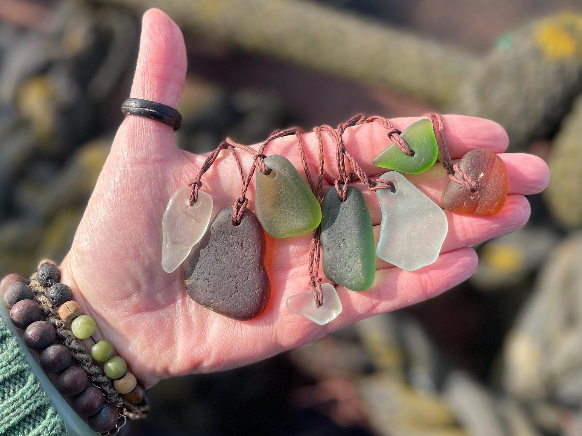 Sea glass pendants, eco friendly necklace, hippy necklace, gift for him, gift for her, recycled necklace, eco friendly jewellery, boho gifts