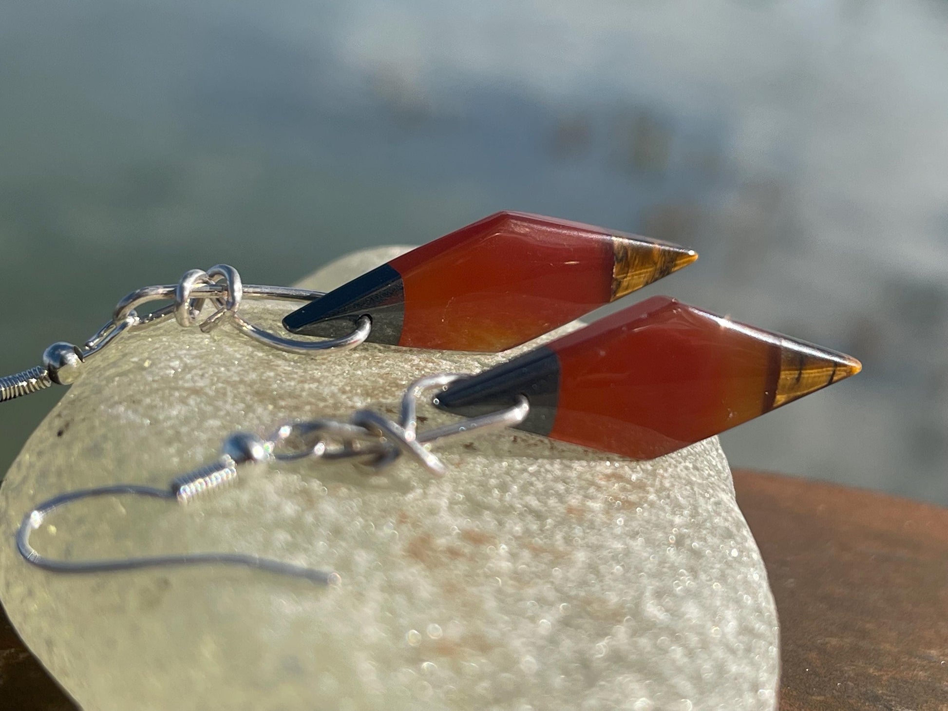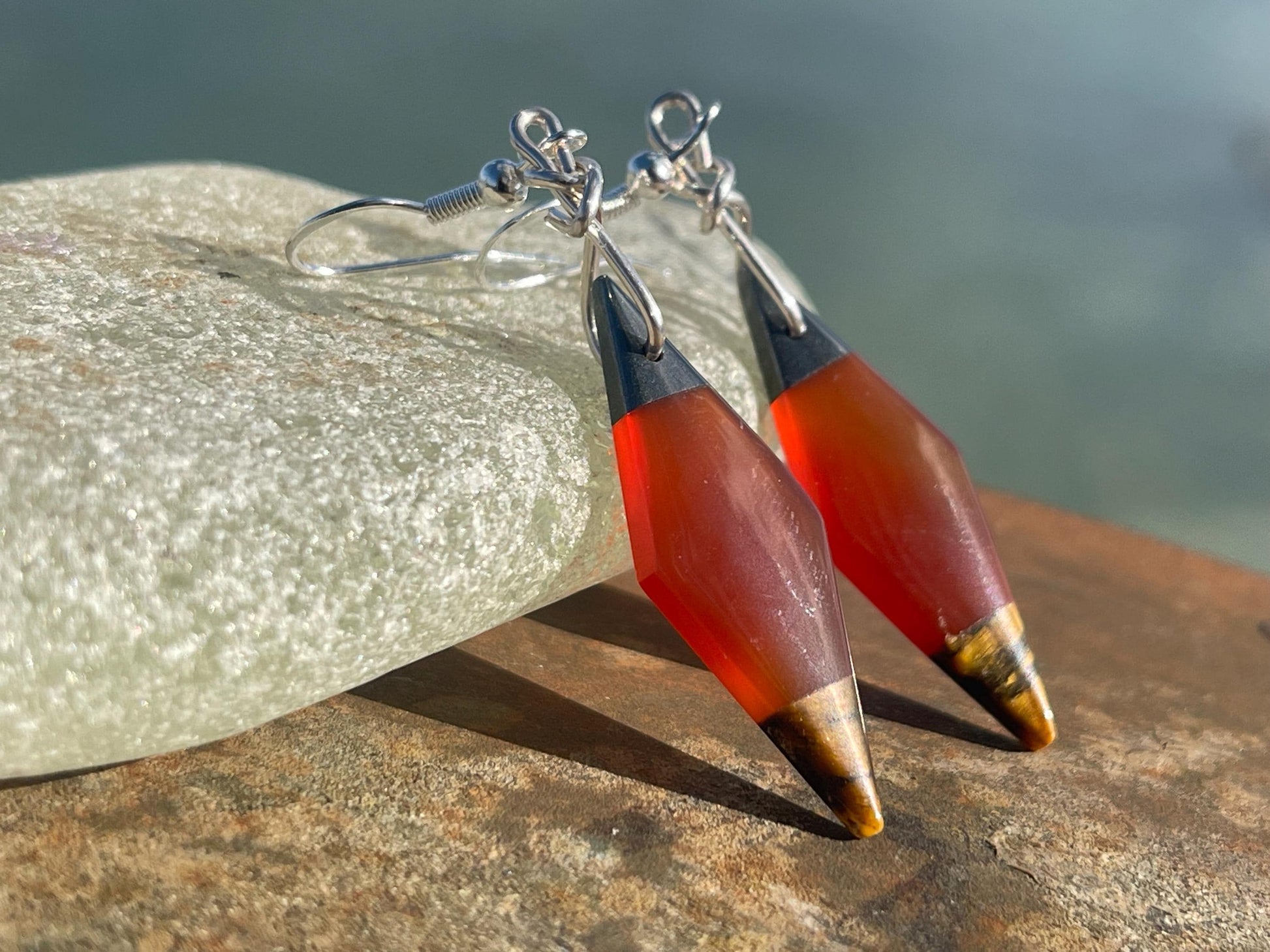 Beautiful carnelian and tigers eye gemstone earrings which I have hosted on recycled sterling silver.