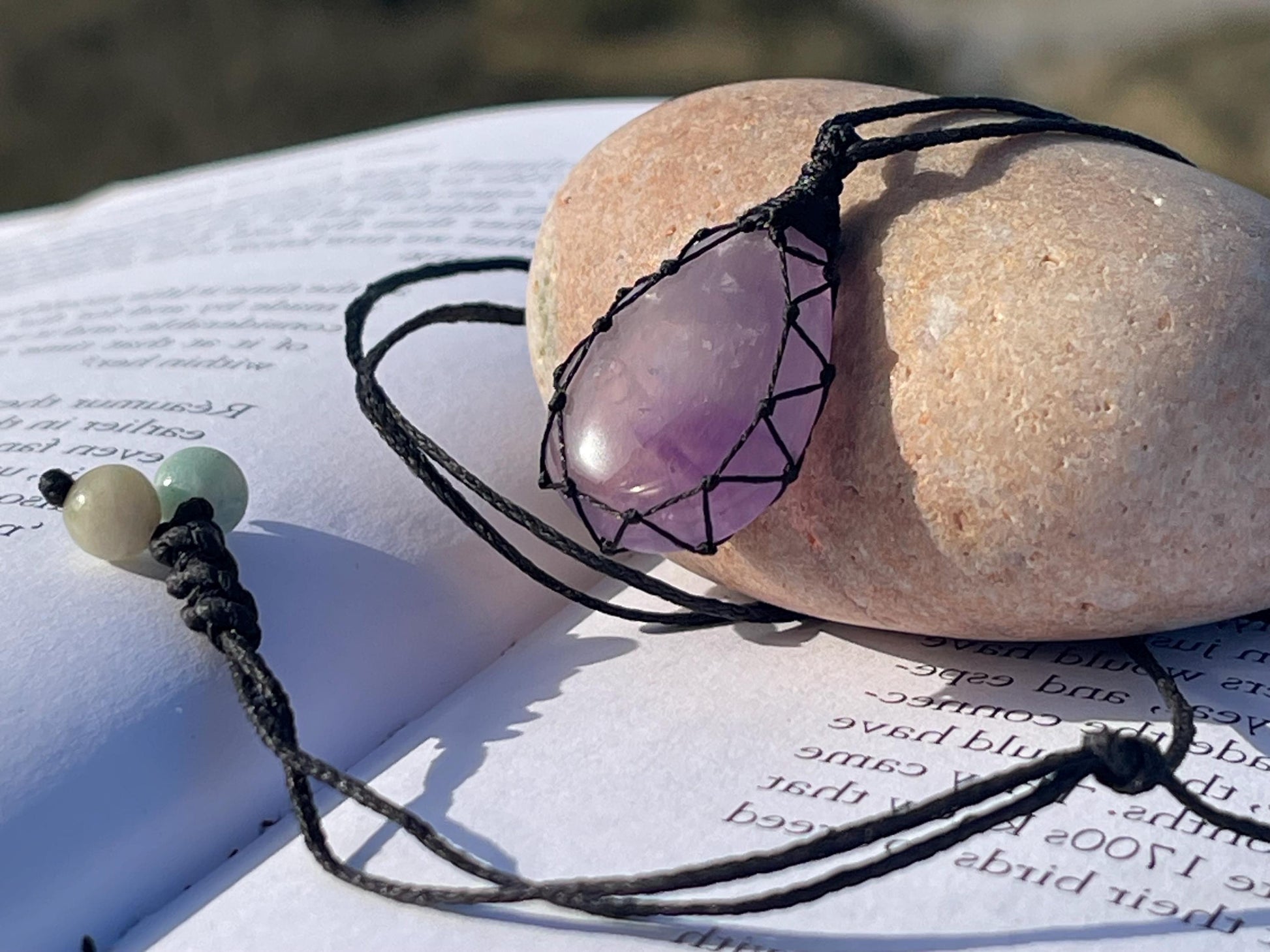 Stunning macrame amethyst necklace, amethyst pendant. Handmade gemstone necklace, boho jewellery. Macrame jewellery. Unique jewellery.