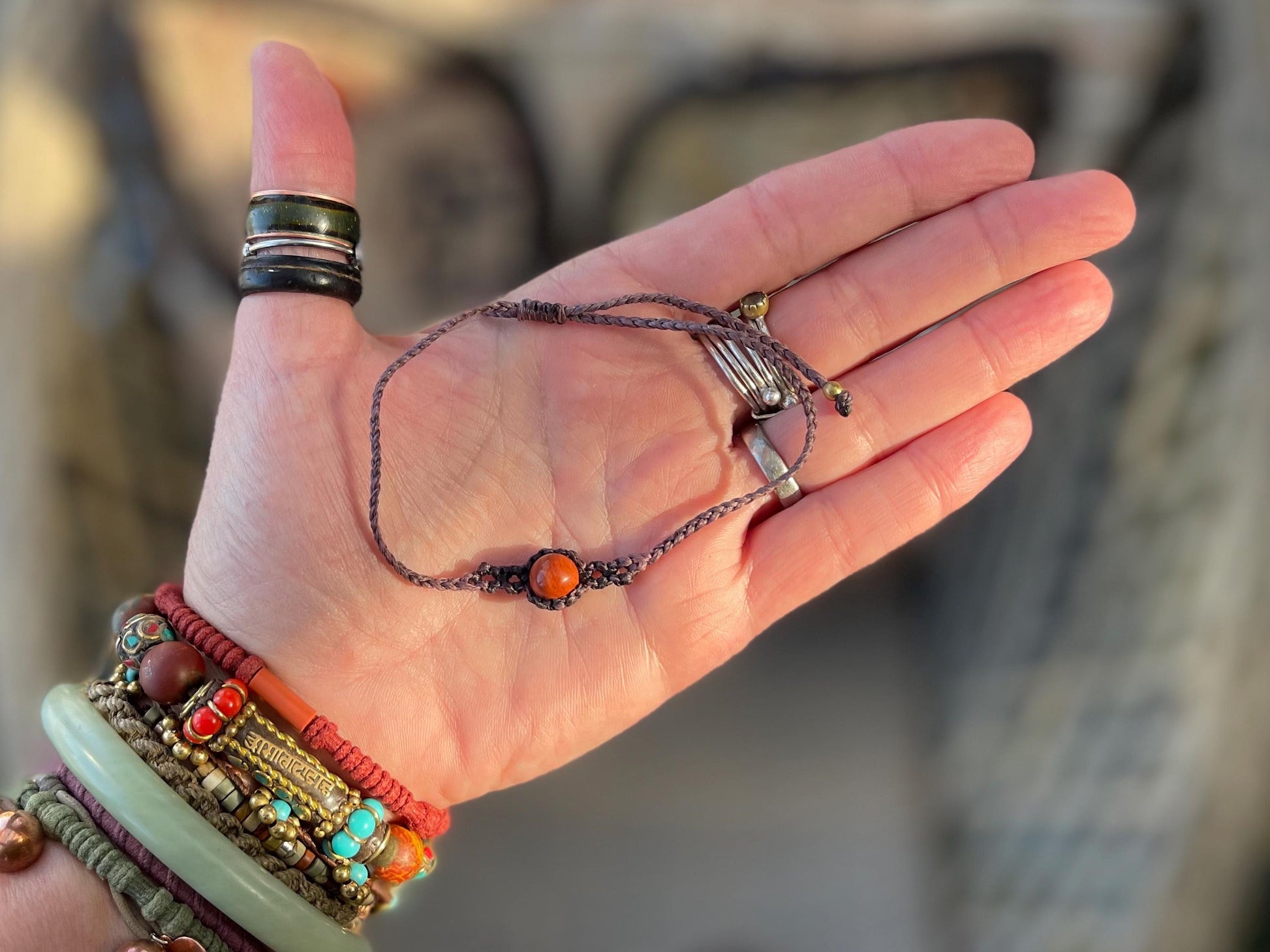 Natural jasper gemstone. A truly unique piece, macrame wrapped and adjustable, so you can tie at your preferred length to suit your wrist size.