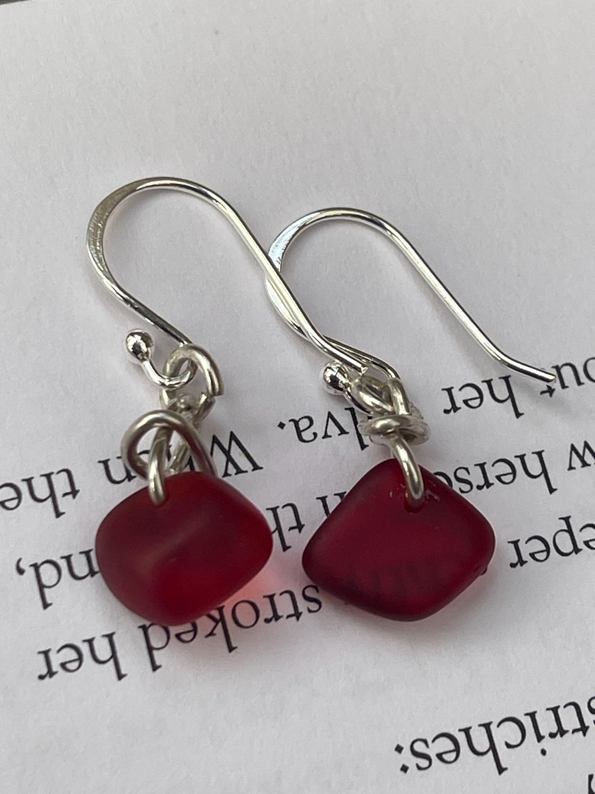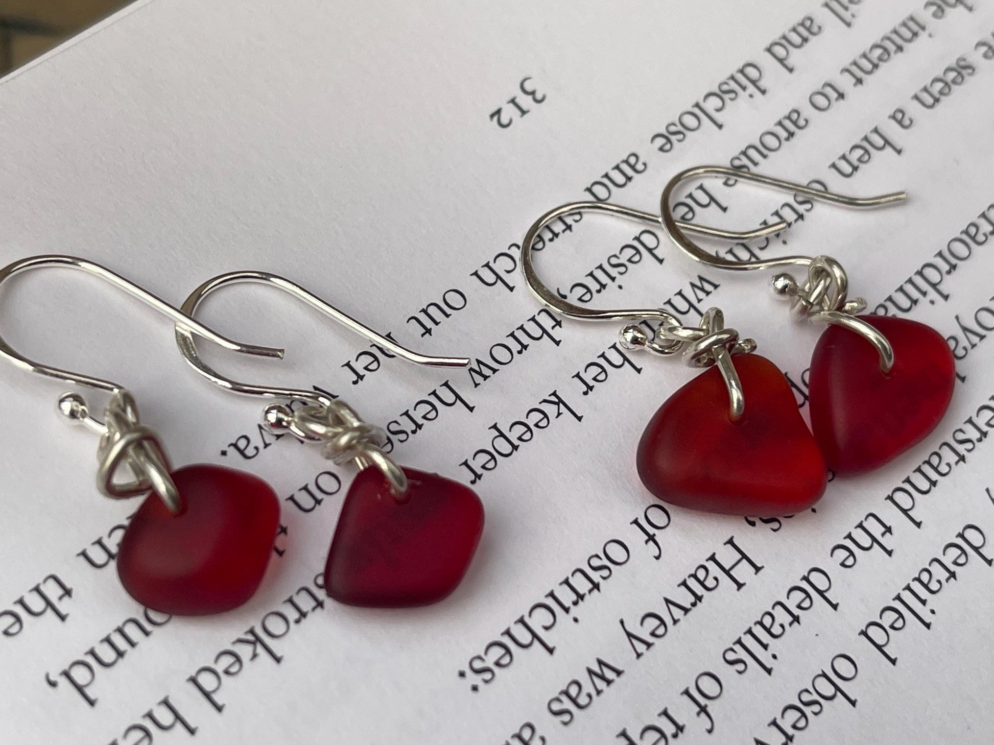 Sustainable jewellery. Eco friendly jewellery. Red sea glass earrings, ethical jewellery, handmade sea glass jewellery, ethical jewelry