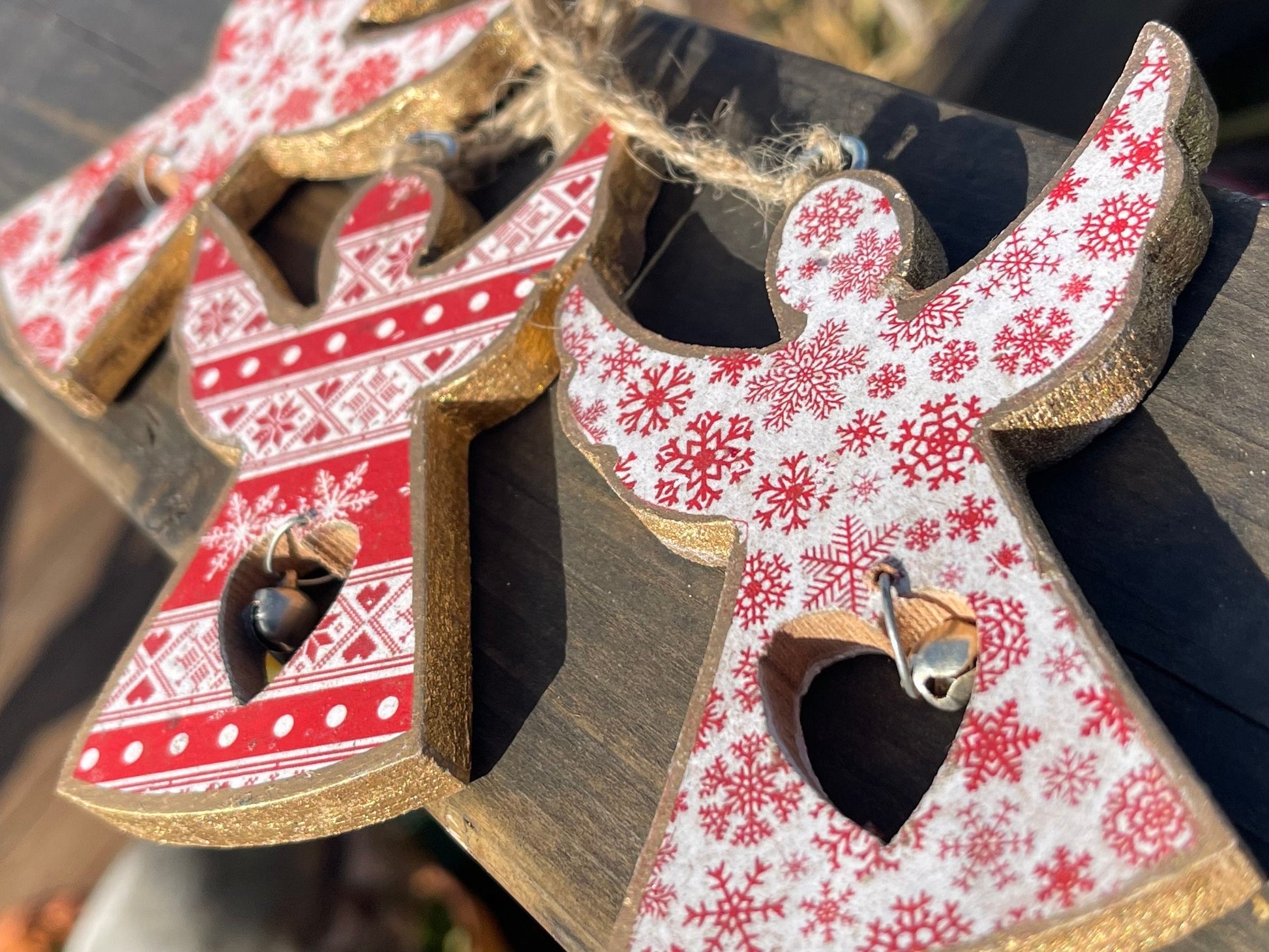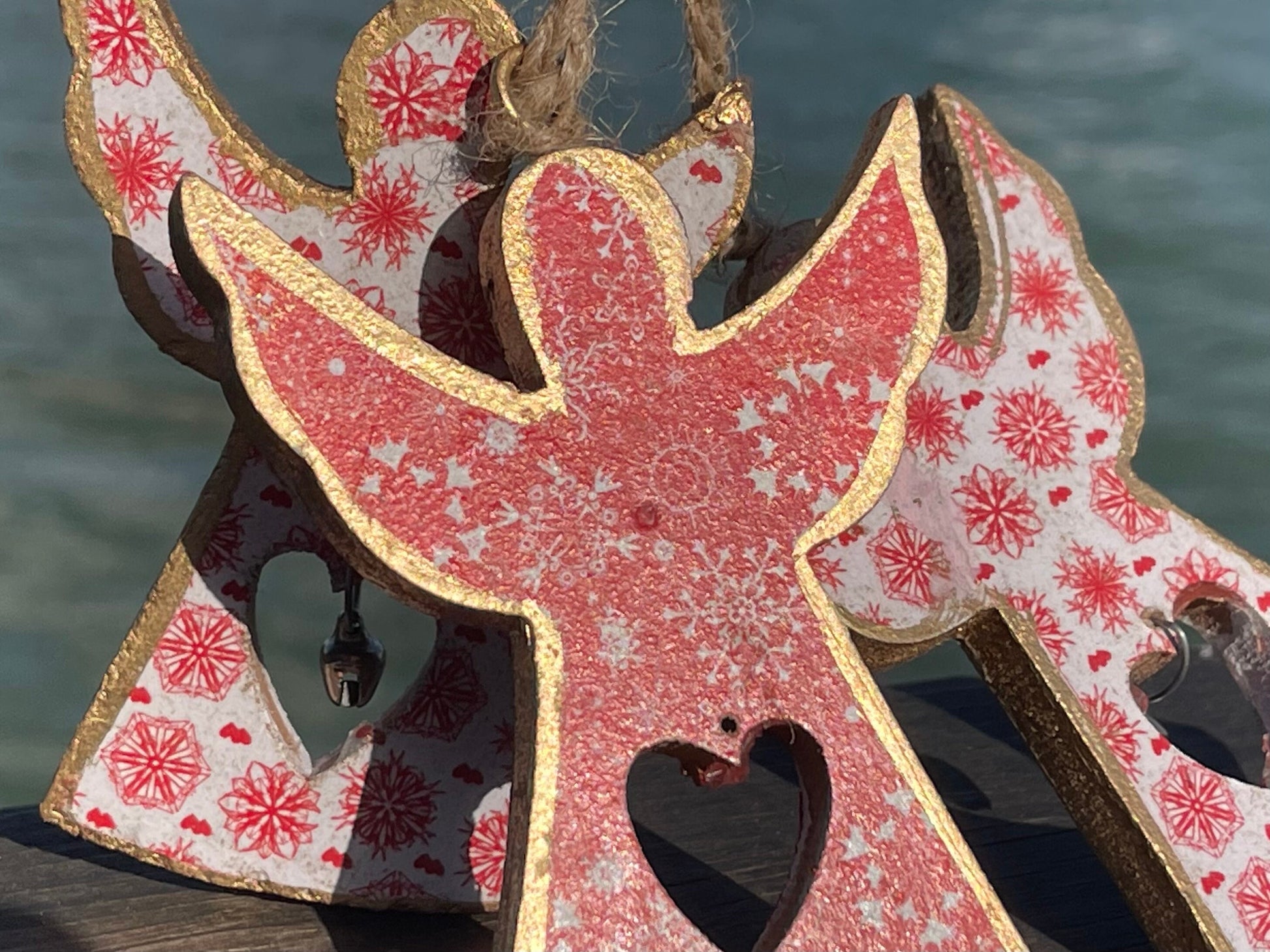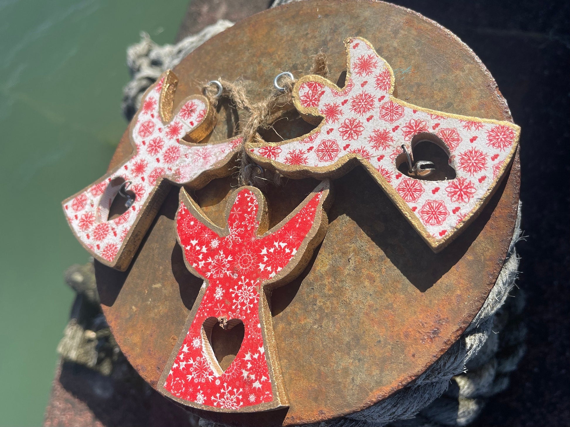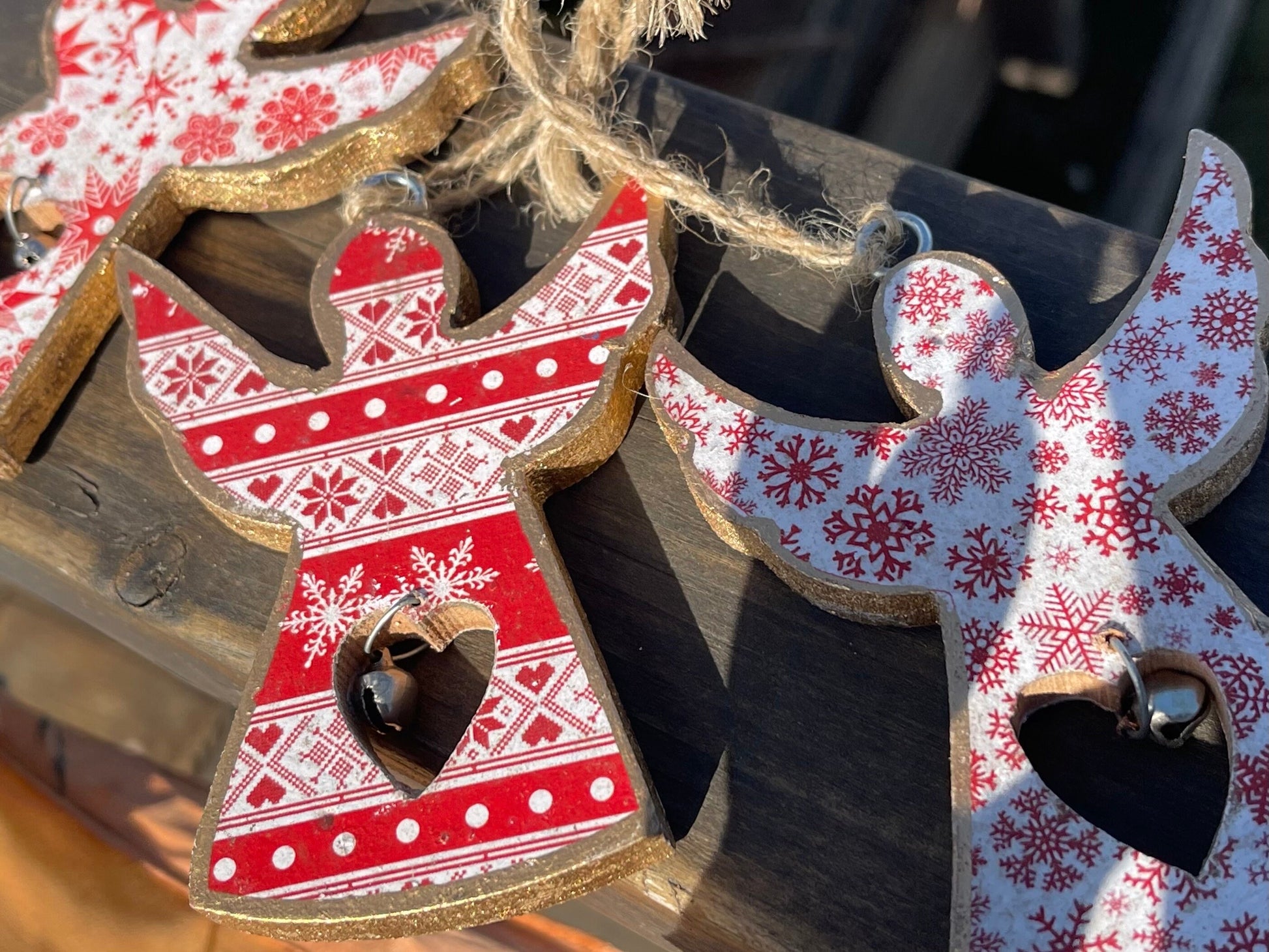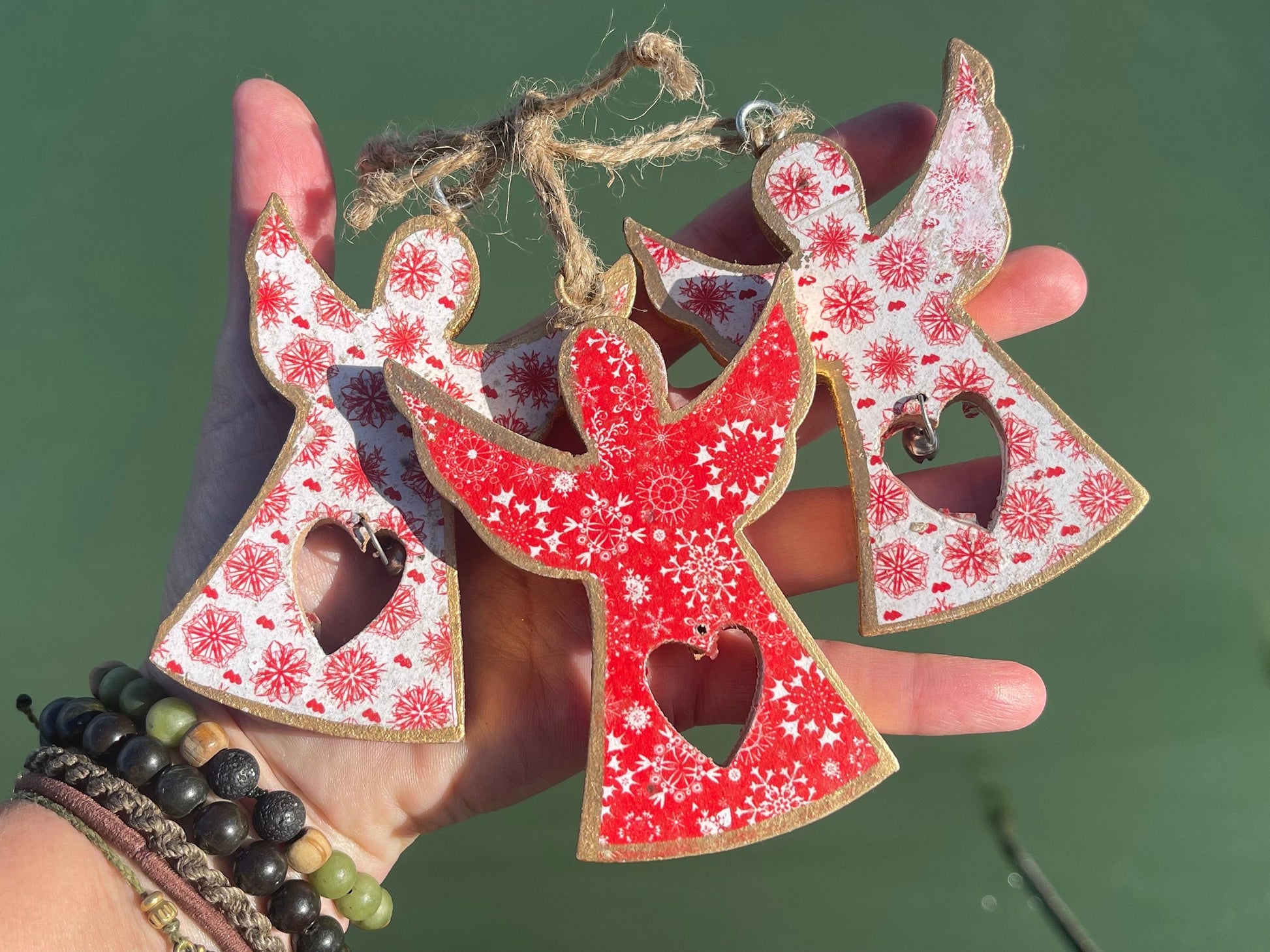 Three handmade Christmas tree decorations, eco friendly Christmas baubles, traditional Christmas decorations for the tree, angel decorations