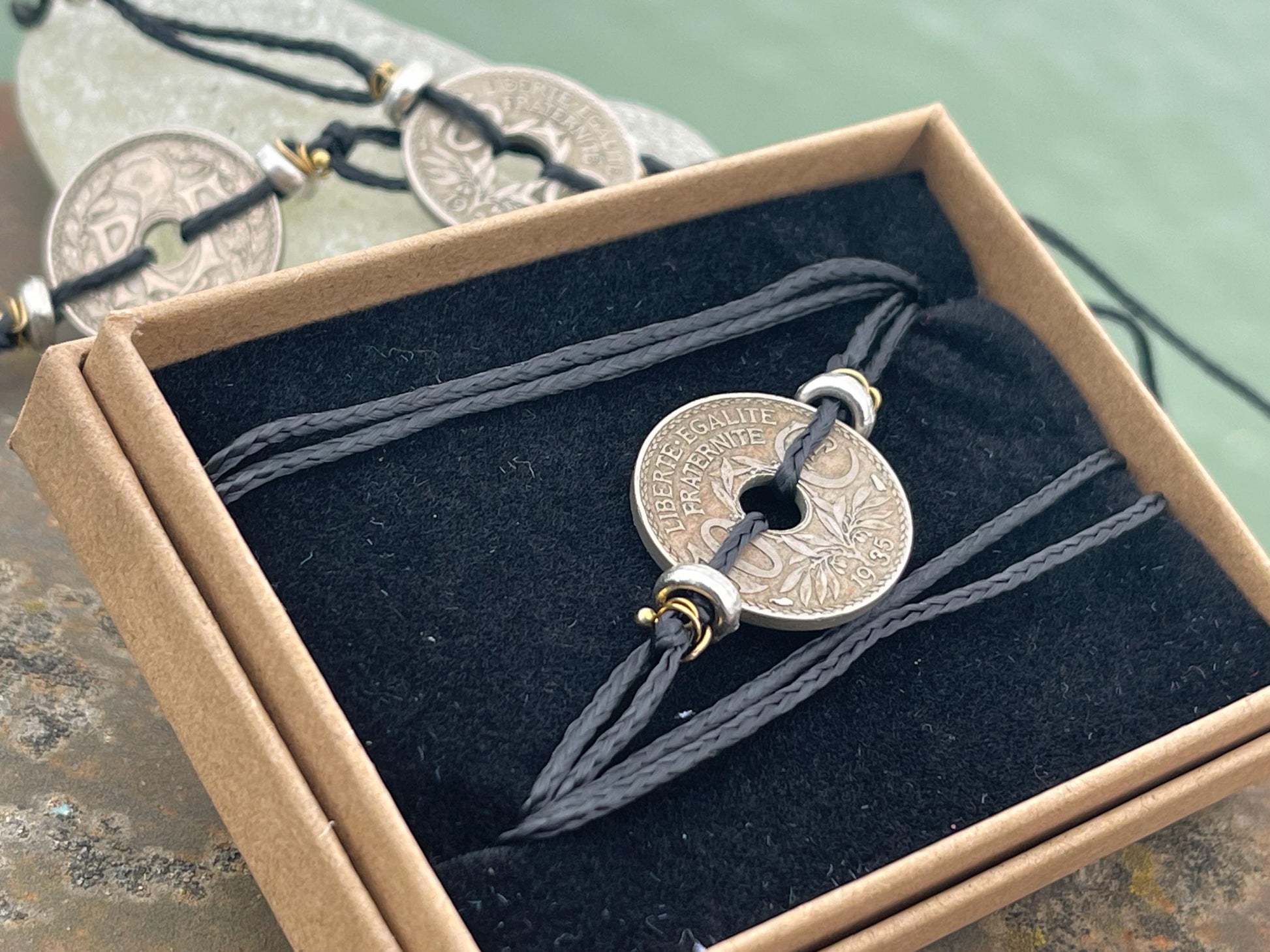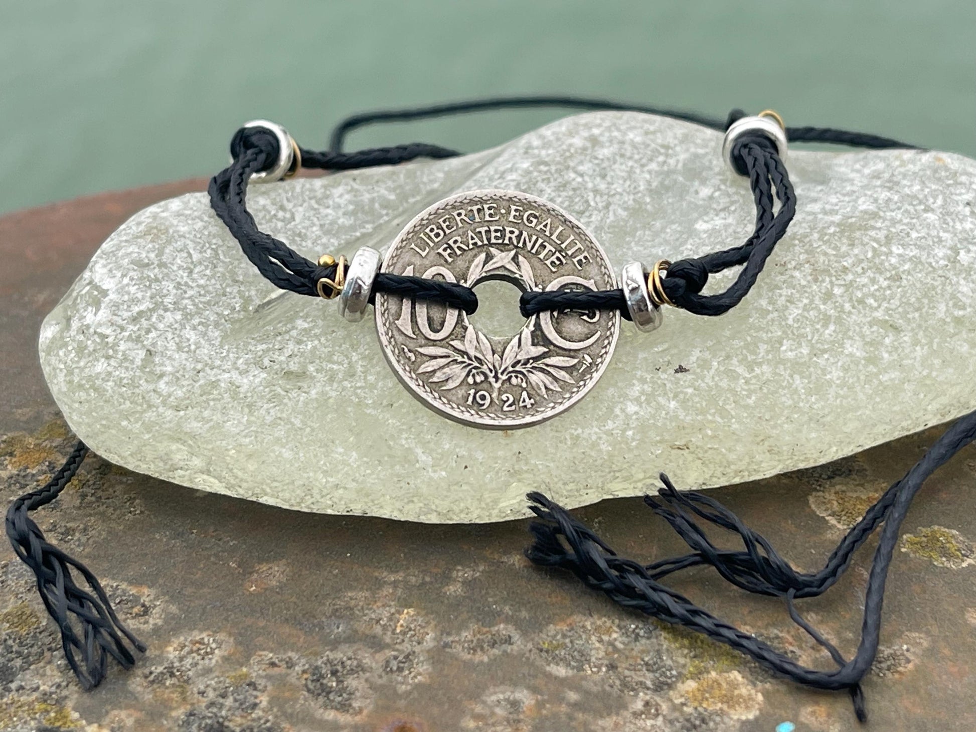 Vintage 10c French coin bracelet. Eco friendly bracelet. Eco friendly jewellery. Ethical handmade jewellery. Bracelet made with eco material