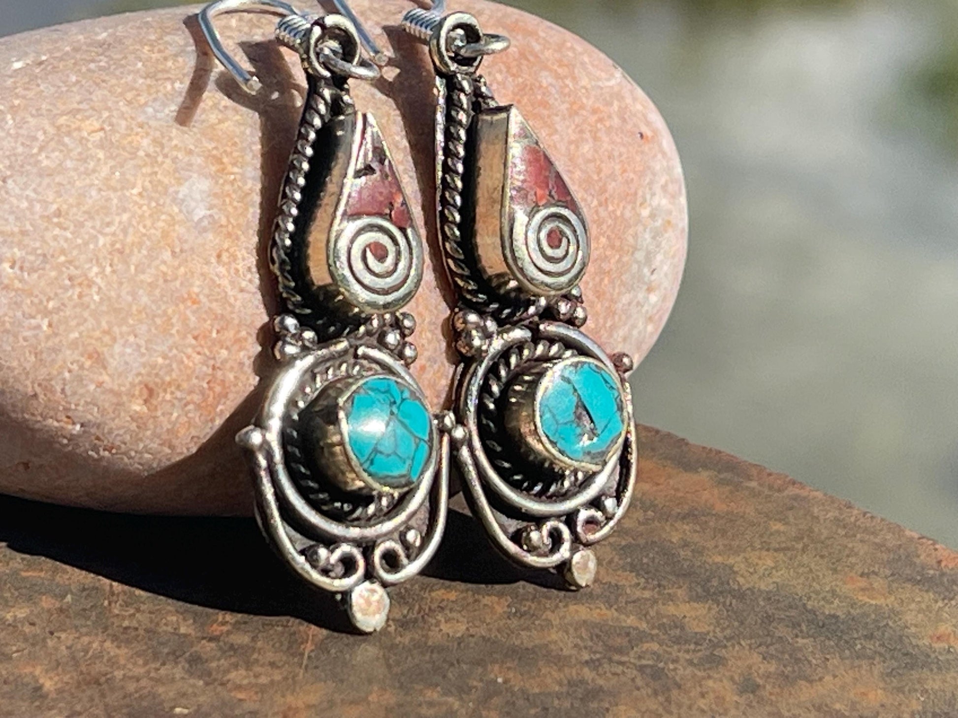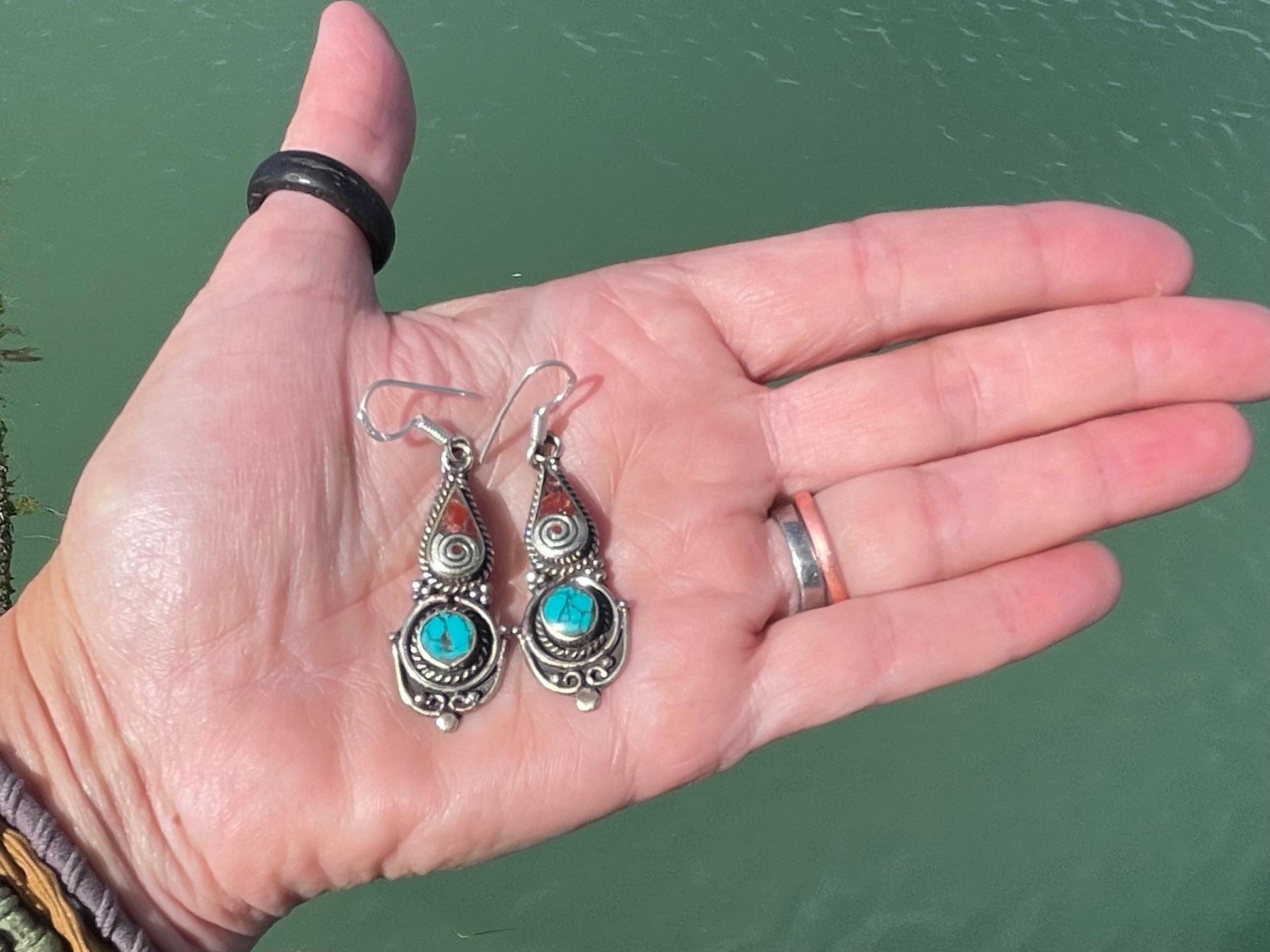 Vintage turquoise earrings, turquoise jewellery, ethical jewellery, gypsy earrings. Eco friendly jewellery. Ethical jewellery.